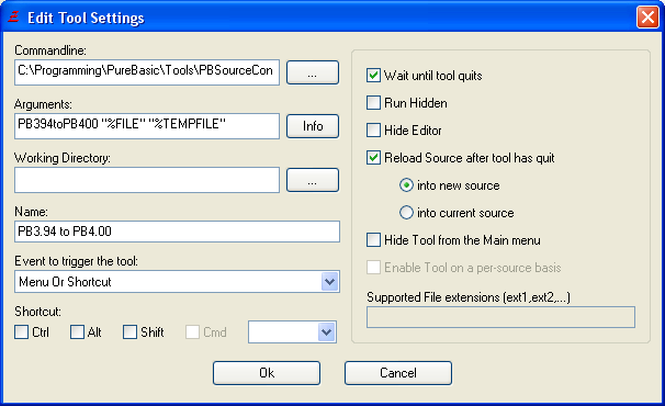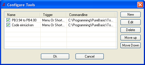 The PureBasic IDE allows you to configure external programs to be called directly from the IDE, through the Menu, Shortcuts, the Toolbar, or on special "triggers". The use of this is to make any other program you use while programming easily accessible.