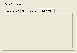 Example:; Shows using of several panels... If OpenWindow(0, 0, 0, 322, 220, "PanelGadget", #PB_Window_SystemMenu | #PB_Window_ScreenCentered) And CreateGadgetList(WindowID(0)) PanelGadget (0, 8, 8, 306, 203) AddGadgetItem (0, -1, "Panel 1") PanelGadget (1, 5, 5, 290, 166) AddGadgetItem(1, -1, "Sub-Panel 1") AddGadgetItem(1, -1, "Sub-Panel 2") AddGadgetItem(1, -1, "Sub-Panel 3") CloseGadgetList() AddGadgetItem (0, -1,"Panel 2") ButtonGadget(2, 10, 15, 80, 24,"Button 1") ButtonGadget(3, 95, 15, 80, 24,"Button 2") CloseGadgetList() Repeat : Until WaitWindowEvent() = #PB_Event_CloseWindow EndIf