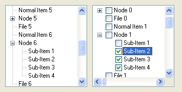 Example:If OpenWindow(0, 0, 0, 355, 180, "TreeGadget", #PB_Window_SystemMenu | #PB_Window_ScreenCentered) And CreateGadgetList(WindowID(0)) TreeGadget(0, 10, 10, 160, 160) ; TreeGadget standard TreeGadget(1, 180, 10, 160, 160, #PB_Tree_CheckBoxes|#PB_Tree_NoLines) ; TreeGadget with Checkboxes + NoLines For ID = 0 To 1 For a = 0 To 10 AddGadgetItem (ID, -1, "Normal Item "+Str(a), 0, 0) ; if you want to add an image, use AddGadgetItem (ID, -1, "Node "+Str(a), 0, 0) ; ImageID(x) as 4th parameter AddGadgetItem(ID, -1, "Sub-Item 1", 0, 1) ; These are on the 1st sublevel AddGadgetItem(ID, -1, "Sub-Item 2", 0, 1) AddGadgetItem(ID, -1, "Sub-Item 3", 0, 1) AddGadgetItem(ID, -1, "Sub-Item 4", 0, 1) AddGadgetItem (ID, -1, "File "+Str(a), 0, 0) ; sublevel 0 again Next Next Repeat : Until WaitWindowEvent() = #PB_Event_CloseWindow EndIf