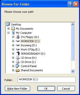 Example:InitialPath$ = "C:\" ; set initial path to display (could also be blank) Path$ = PathRequester("Please choose your path", InitialPath$) If Path$ MessageRequester("Information", "You have selected following path:"+Chr(10)+Path$, 0) Else MessageRequester("Information", "The requester was canceled.", 0) EndIf