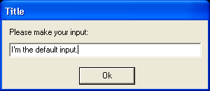 Beispiel:Input$ = InputRequester("Titel", "Bitte machen Sie Ihre Eingabe:", "Ich bin die Standardeingabe.") If Input$ > "" a$ = "Sie haben folgendes in den Requester geschrieben:" + Chr(10) ; Chr(10) wird nur für a$ + Input$ ; den Zeilenumbruch benötigt Else a$ = "Der Requester wurde abgebrochen oder es wurde nichts eingegeben." EndIf MessageRequester("Information", a$, 0) End
